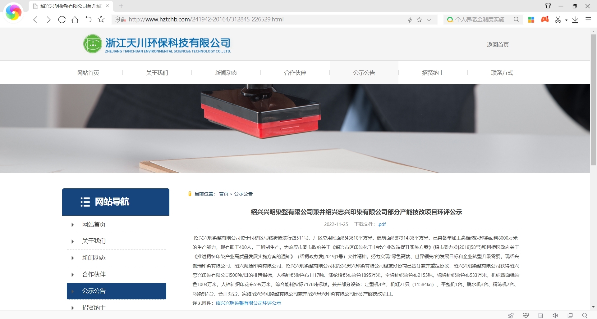 紹興興明染整有限公司位于柯橋區(qū)馬鞍街道濱行路511號,廠區(qū)總用地面積43610平方米,建筑面積87914.86平方米,已具備年加工高檔紡織印染面料8000萬米的生產(chǎn)能力,現(xiàn)有職工400人,三班制生產(chǎn)。